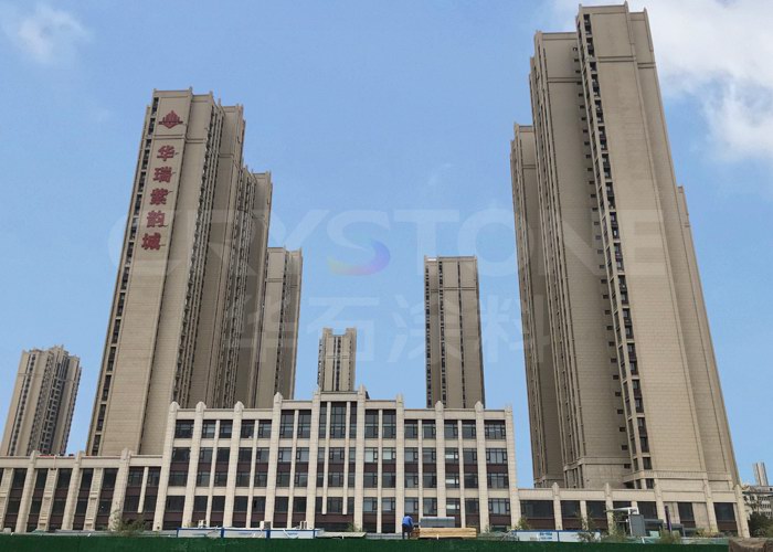 綜合評價:該項目對外墻涂料選材要求高,選用了華石高品質(zhì)真石漆,施工平順度好,用料節(jié)省。在施工過程中,施工管理完善,施工安排合理,避免了不同批次的色差問題,項目共45萬㎡,外墻整體效果一致,工程品質(zhì)優(yōu)異。
