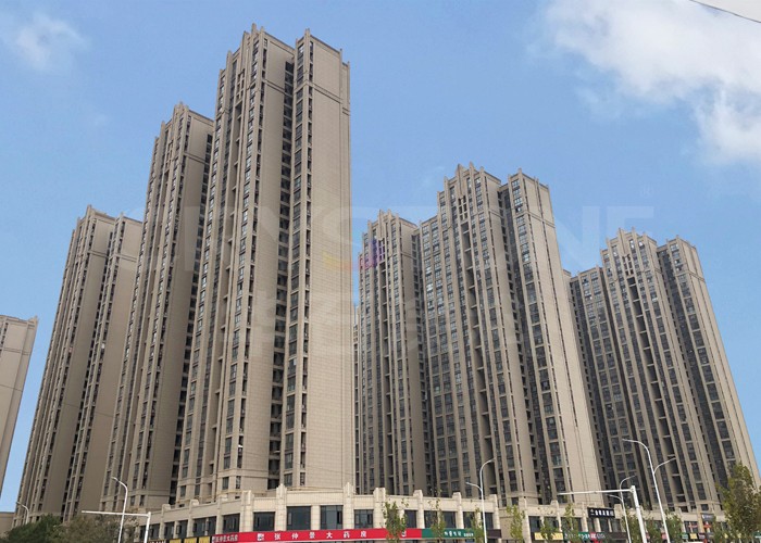 墻體外觀裝飾采用了米黃色的真石漆,考慮北方天氣時有霧霾。項目選用華石高品質(zhì)真石漆,產(chǎn)品附著力強,耐候性好,能有效抵抗紫外線照射,保色性佳,延長建筑外墻裝飾使用壽命,提高樓盤的檔次。