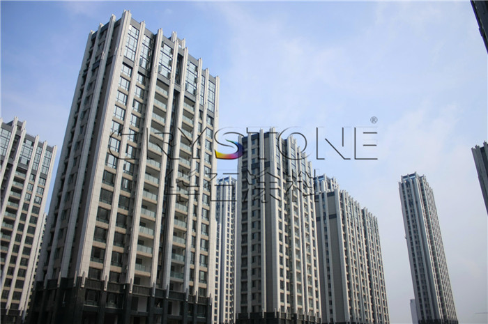 得力淺水灣由湖州得力房地產(chǎn)有限公司開發(fā),項(xiàng)目傳承ArtDeco建筑百年精髓,特有的28棟濱水建筑集群,線條簡潔明晰,傲然屹立于西南新城,氣勢非凡,將成為湖州城市耀眼的金色名片。外立墻采用天然仿石涂料,并結(jié)合干掛石材裝飾,兩者相輔相成,彼此輝映,使得外觀立體生動,無論是質(zhì)感,還是色彩都承襲了天然石材的質(zhì)樸與自然。淡灰色的外立面,有肌理的建筑觸感,深諳上流社會的審美哲學(xué),于低調(diào)內(nèi)斂中匹配名流貴胄的至上品味。