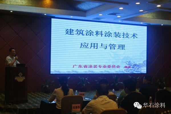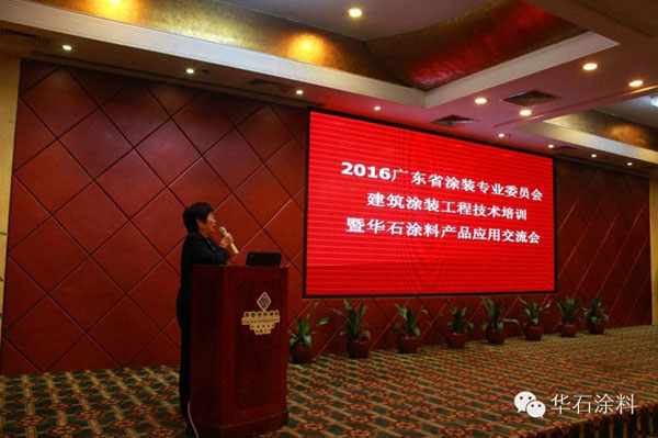 4月8日上午,“2016年廣東省涂裝專業(yè)委員會建筑涂料工程技術(shù)培訓(xùn)暨華石涂料產(chǎn)品應(yīng)用交流會”在江門麗宮酒店舉辦,本次培訓(xùn)交流會由廣涂協(xié)主辦,華石涂料承辦,由華石涂料市場部黃經(jīng)理主持會議。
