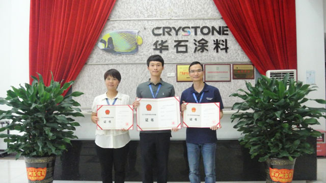 經(jīng)過重重考核,華石涂料申報的《環(huán)保多彩外墻建筑涂料開發(fā)》項目榮獲2015年度江門市科學技術獎二等獎!